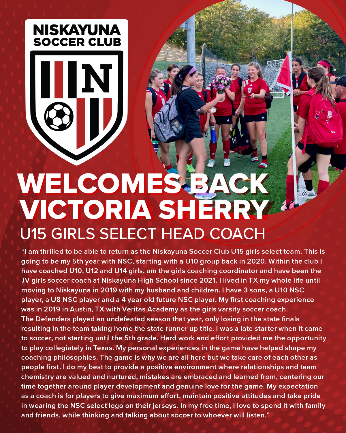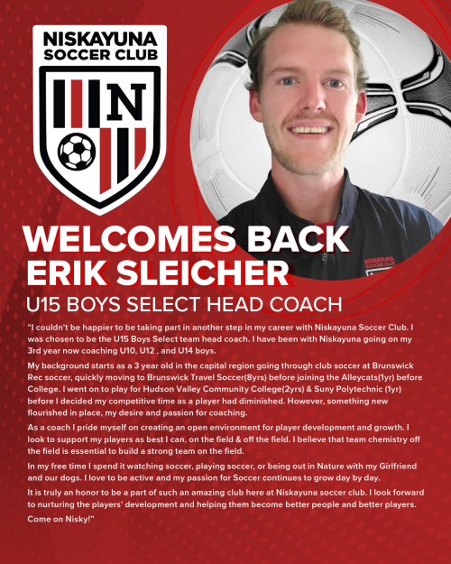 Coach Sherry will be returning on the girls side, and we’ll be welcoming Coach Lucas Kownack as U13 Boys Select head coach, and Coach Erik Sleicher as U15 Boys Select head coach.