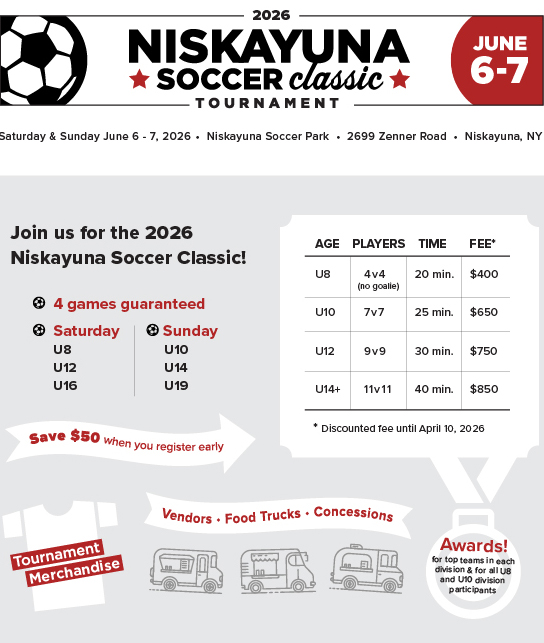 Join us for the 2026 Niskayuna Soccer Classic. Registration is now open.